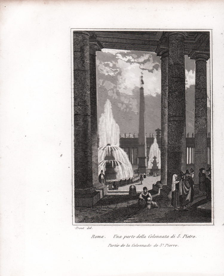 Veduta tratta dal celebre L'Italie, la Sicile, les Iles Éoliennes, l'Ile d'Elbe, la Sardaigne, Malte, l'Ile de Calypso etc. D'après les inspirations, les recherches et les travaux de M. M. le Vicomte de Chateaubriand, De Lamartine, Raoul-Rochette, le Comte de Forbin, Piranesi, Mazzara, et de Napoléon, Denon, Saint-Non, Lord Byron, Goethe, Visconti, Cicognara, Lanzi, de Bonstetten, Swinburne, etc. Sites, Monumens, Scènes et Costumes, d'après M.me Haudebourt-Lescot, MM. Horace-Vernet, Granet, Isabey, Ciceri, Mazzara, le Major Light, le Cap. Batty, Cooke, Gell et Gandy, Pinelli, Ferrari, Zucoli, et beaucoup d'autres artistes italiens. Recueillis et publiés par Audot Père, Membre de la Société de Géographie, edito a Parigi tra il 1834 ed il 1837 e ristampato a Torino [Giuseppe Pomba e Ca, 1834-1838].