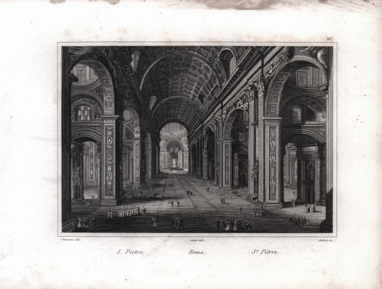 Veduta tratta dal celebre L'Italie, la Sicile, les Iles Éoliennes, l'Ile d'Elbe, la Sardaigne, Malte, l'Ile de Calypso etc. D'après les inspirations, les recherches et les travaux de M. M. le Vicomte de Chateaubriand, De Lamartine, Raoul-Rochette, le Comte de Forbin, Piranesi, Mazzara, et de Napoléon, Denon, Saint-Non, Lord Byron, Goethe, Visconti, Cicognara, Lanzi, de Bonstetten, Swinburne, etc. Sites, Monumens, Scènes et Costumes, d'après M.me Haudebourt-Lescot, MM. Horace-Vernet, Granet, Isabey, Ciceri, Mazzara, le Major Light, le Cap. Batty, Cooke, Gell et Gandy, Pinelli, Ferrari, Zucoli, et beaucoup d'autres artistes italiens. Recueillis et publiés par Audot Père, Membre de la Société de Géographie, edito a Parigi tra il 1834 ed il 1837 e ristampato a Torino [Giuseppe Pomba e Ca, 1834-1838].