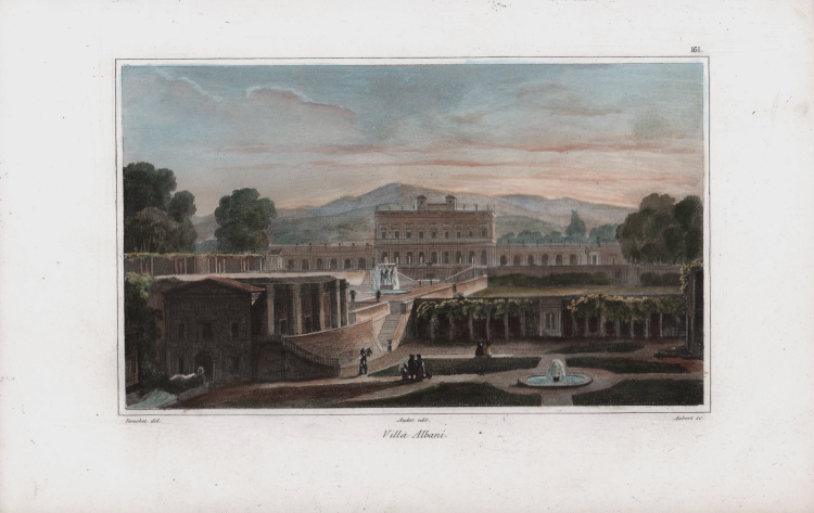 Veduta tratta dal celebre L'Italie, la Sicile, les Iles Éoliennes, l'Ile d'Elbe, la Sardaigne, Malte, l'Ile de Calypso etc. D'après les inspirations, les recherches et les travaux de M. M. le Vicomte de Chateaubriand, De Lamartine, Raoul-Rochette, le Comte de Forbin, Piranesi, Mazzara, et de Napoléon, Denon, Saint-Non, Lord Byron, Goethe, Visconti, Cicognara, Lanzi, de Bonstetten, Swinburne, etc. Sites, Monumens, Scènes et Costumes, d'après M.me Haudebourt-Lescot, MM. Horace-Vernet, Granet, Isabey, Ciceri, Mazzara, le Major Light, le Cap. Batty, Cooke, Gell et Gandy, Pinelli, Ferrari, Zucoli, et beaucoup d'autres artistes italiens. Recueillis et publiés par Audot Père, Membre de la Société de Géographie, edito a Parigi tra il 1834 ed il 1837 e ristampato a Torino [Giuseppe Pomba e Ca, 1834-1838].