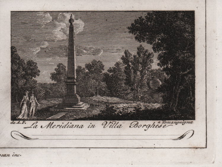 Molte delle vedute derivano dalla celebre opera di Giuseppe Vasi, Delle magnificenze di Roma antica e moderna. Pubblicata in 10 volumi dal 1747 al 1761, l’opera presenta 238 incisioni in rame, ciascuna incisione con testo narrativo che fornisce informazioni storiche e documentarie.