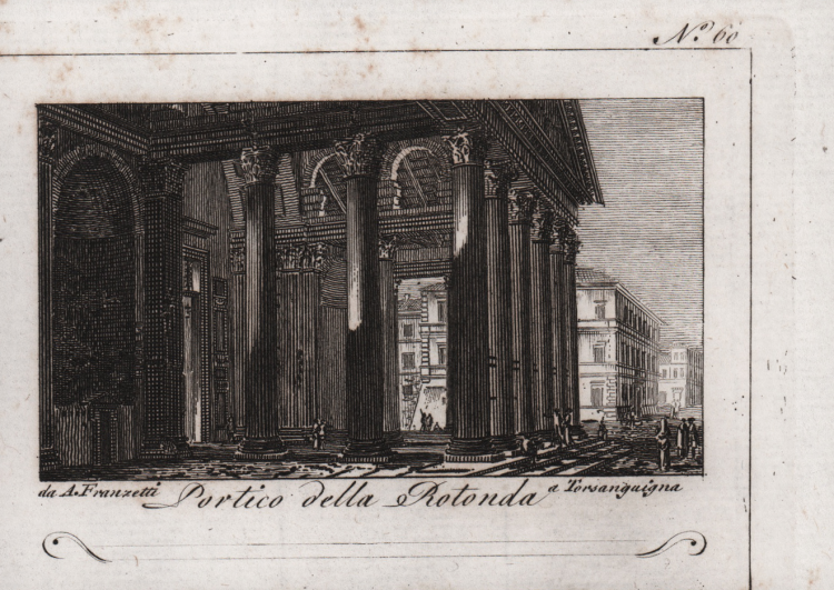 Veduta tratta dalla celebre Raccolta di num. 320 Vedute sì antiche, che moderne della città di Roma... …Incise a bulino in N. 80 rami, In Roma Nella Calcografia di Agapito Franzetti a Torsanguigna Col Permesso.