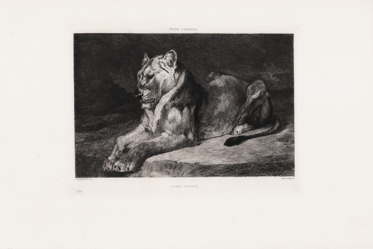Leone sdraiato, rivolto verso sinistra. Pubblicata in “L'Art”, volume 18, 1876.