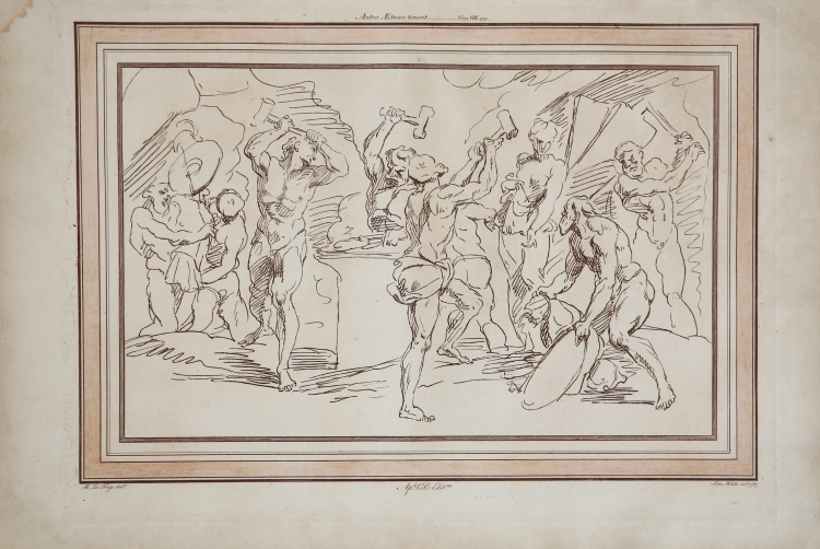 Vulcano forgia le armi per Enea, da un disegno di Perin del Vaga.