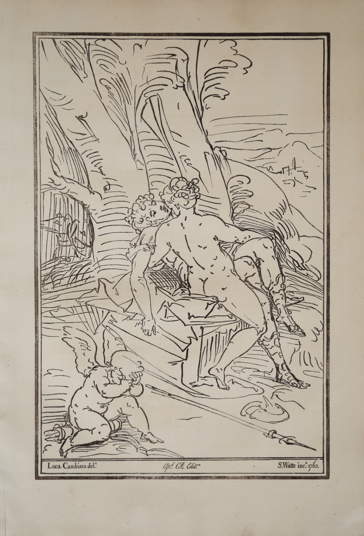 Dalla raccolta di Charles Rogers “A Collection of Prints in Imitation of Drawings to which are annexed lives with explanatory and critical notes by Charles Rogers Esq. F.R.S. S.A.L. / Quantanus nobis denegatur diu viver relinquamus aliquid quo nos vixisse testemur. Plin. Lib. III. Epist. 7 / Stampato da J. Nicholls, successore di Mr Bowyer e venduto da John Boydell, incisore, n. 93, Cheapside. Benjamin White, presso Horace's Head, Fleet-Street. Peter Molini, in Oxendon-Street, Hay-Market M.DCC.LXXVIII”.